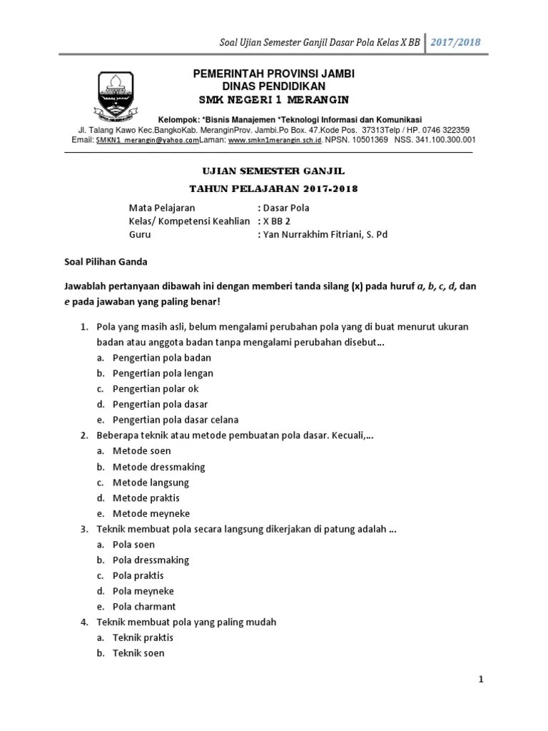 Soal Dasar Teknologi Menjahit Smk Kelas 10 / Soal Mulok Tata Busana Kelas X Genap / Semester genap ready bulan desember, .
